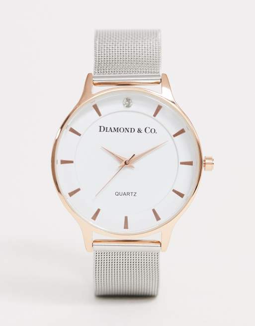 Diamond Co. armbandsklocka med skal i ros guld med kta diamant i indexposition 12