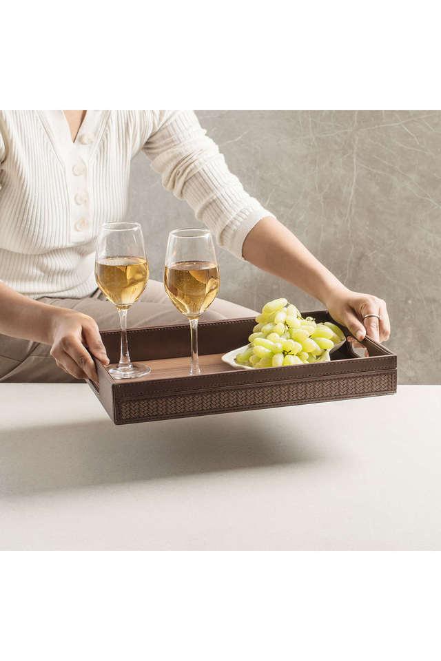 Buy SPREAD Brown Leatherite Large Serving Tray Set of 1 Modern