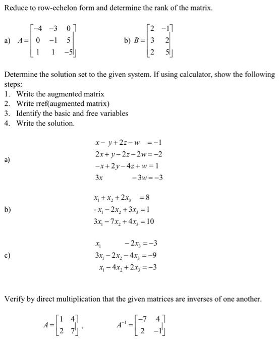Solved Reduce to row echelon form and determine the rank of