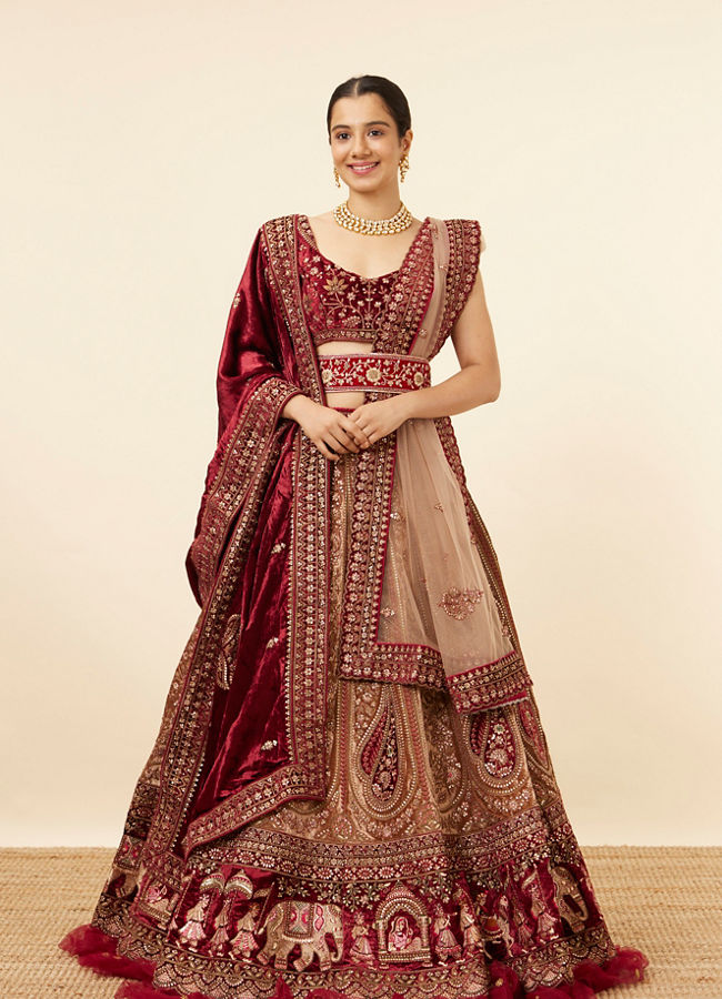Fawn Velvet Bridal Lehenga