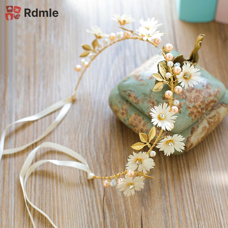 Women Flower Headband With Ribbon Wreath Wedding Party Ladies