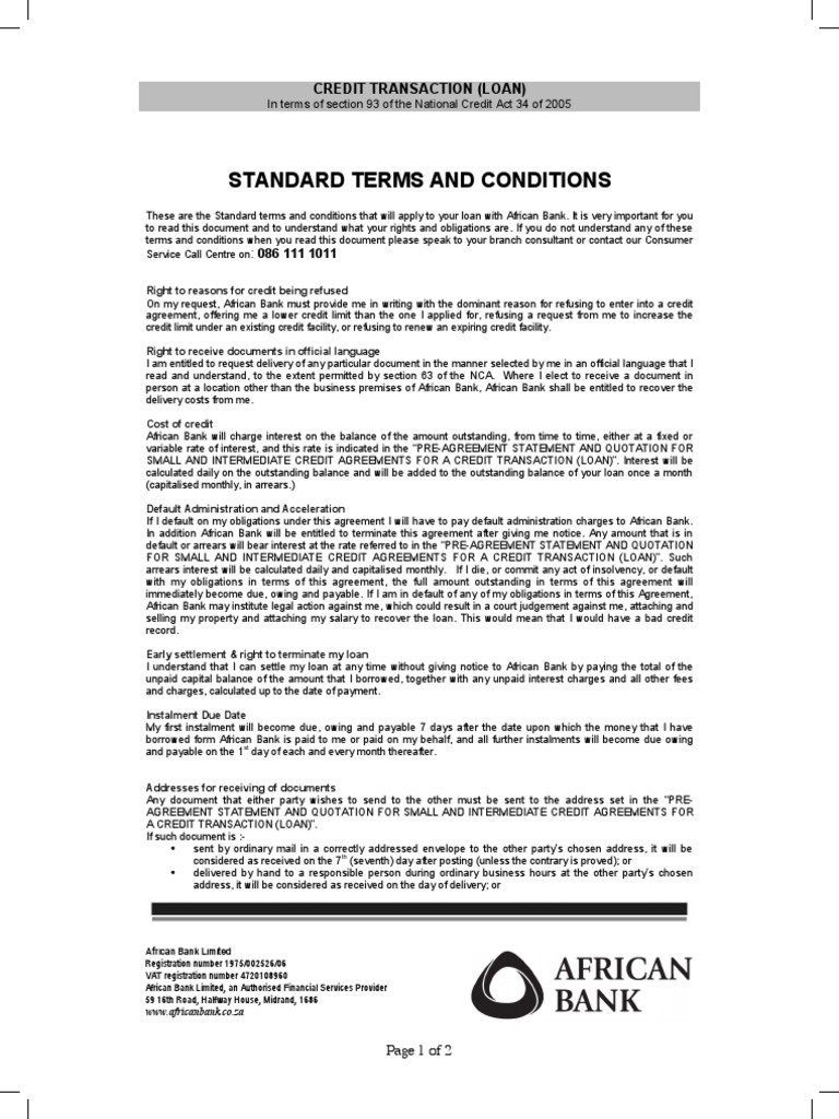 Personal Loan Terms and Conditions PDF Loans Debits And Credits