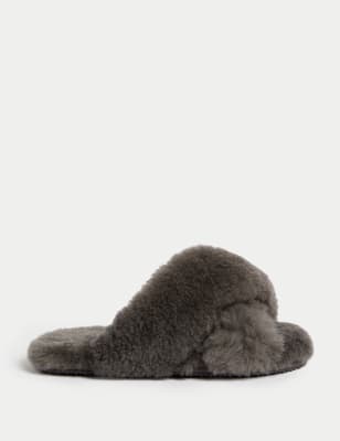 Shearling Crossover Slider Slippers M S US