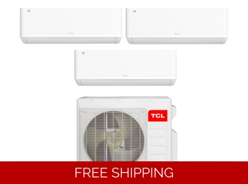 TCL 22 SEER 3 Zone Mini Split Heat Pump Ductless Air Conditioner Unit Triple Zone Wall Mount Wifi