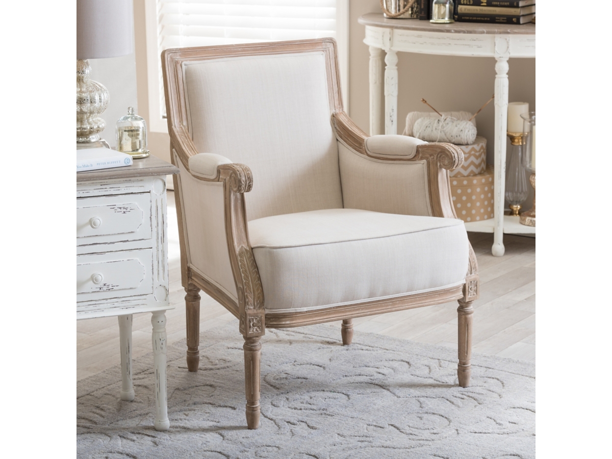 Baxton Studio Chavanon Wood and Linen Traditional French Accent Chair with Arm Rest Light Beige