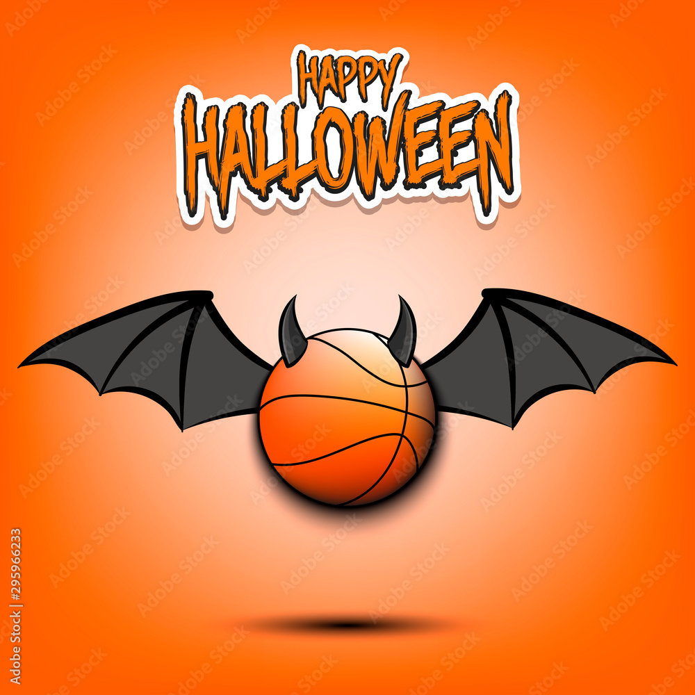 Happy Halloween. Basketball ball with horns and wings Stock Vector