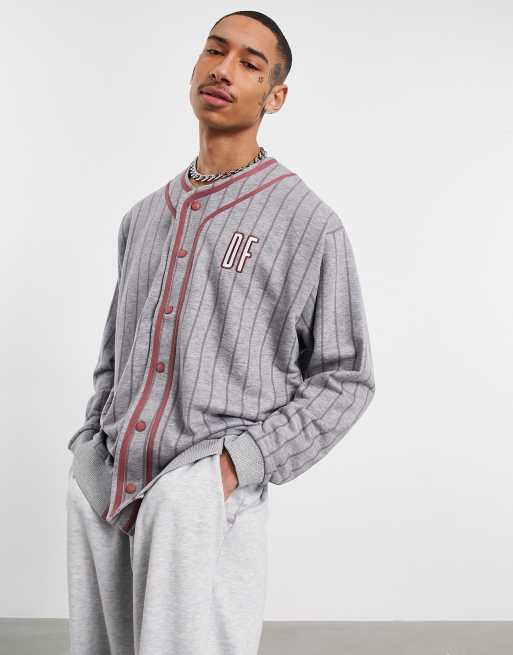 ASOS Dark Future Oversized gestreepte baseball sweatshirt met borduursel op de borst en rug in grijs