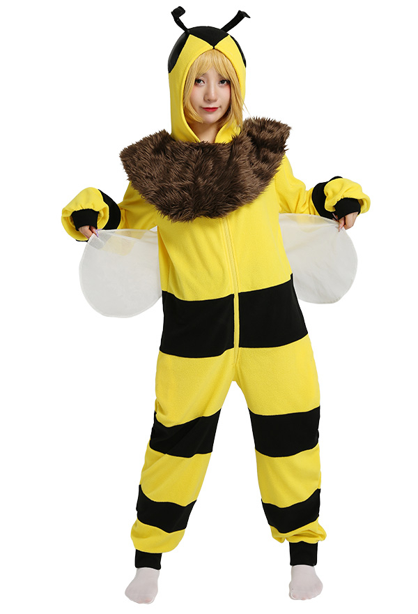 Cartoon Bee Onesie Pajamas Hooded Adult Onesie Women Long Sleeve