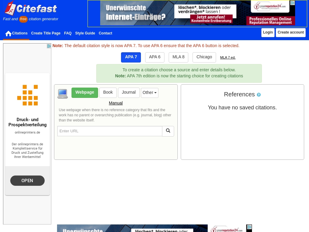 APA7 citation generator. Citefast automatically formats citations
