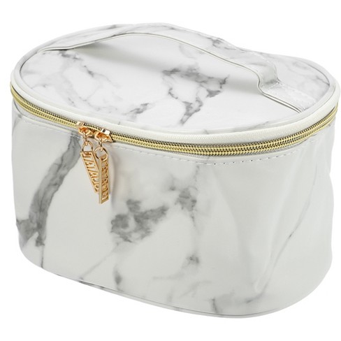 WALONER Preppy Patch Makeup Bag Leather Cosmetic Bag Large Makeup