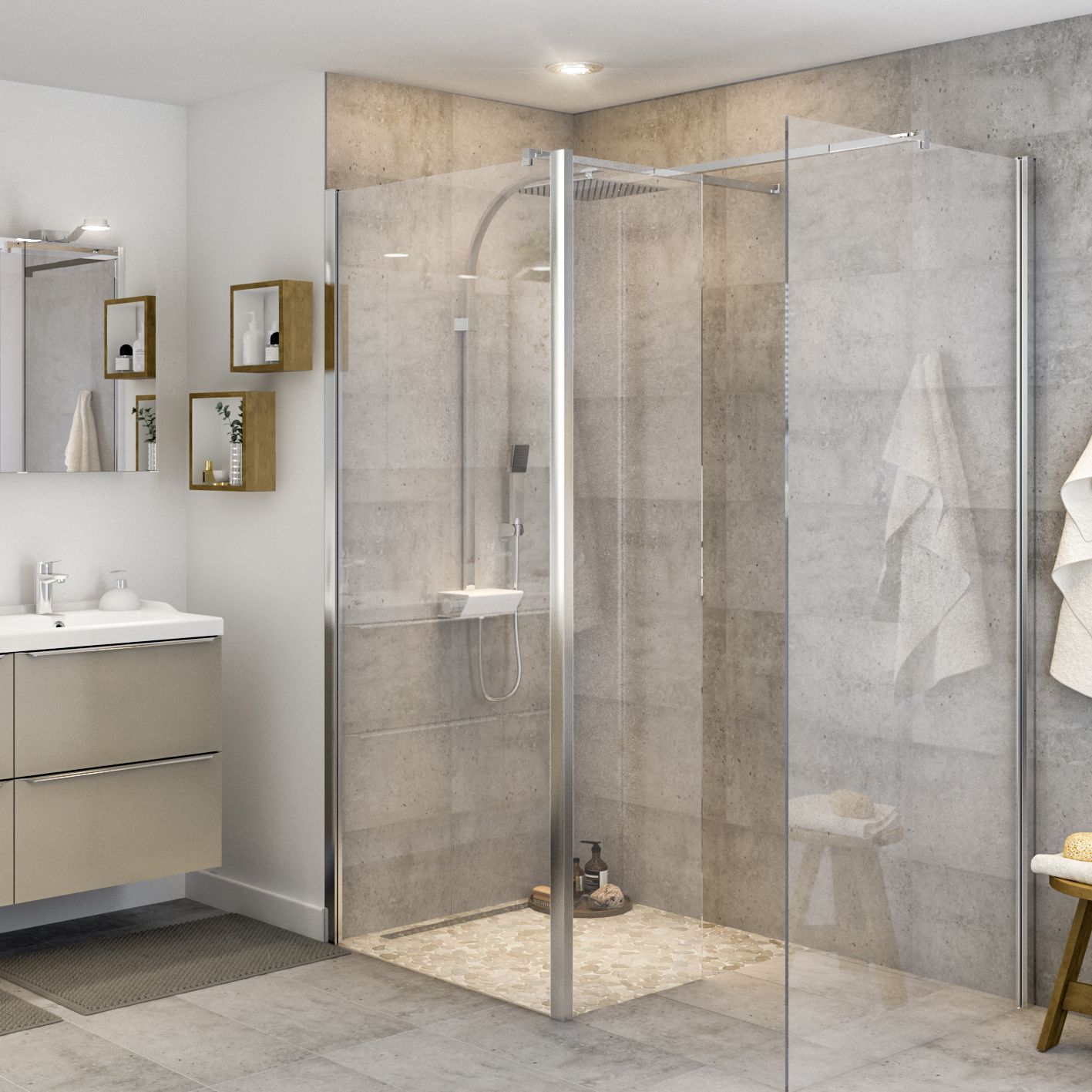 GoodHome Beloya Chrome effect Clear Walk in Wet room glass screen
