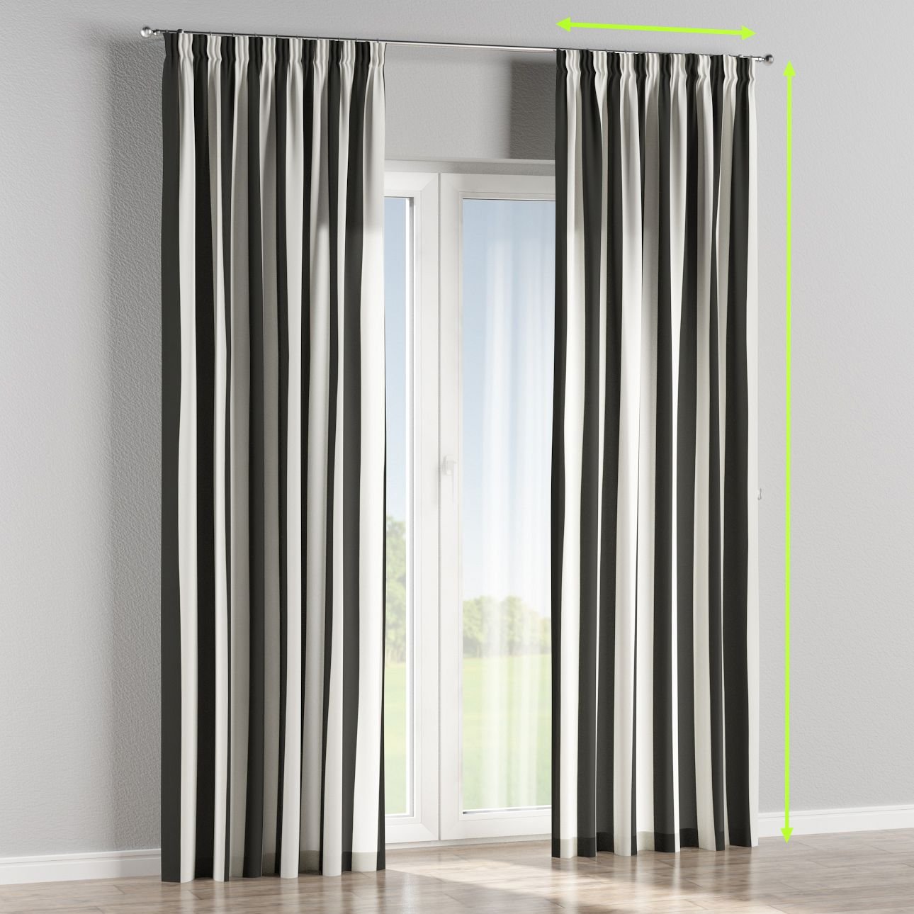 Pencil pleat lined curtain black and white stripes 137 53