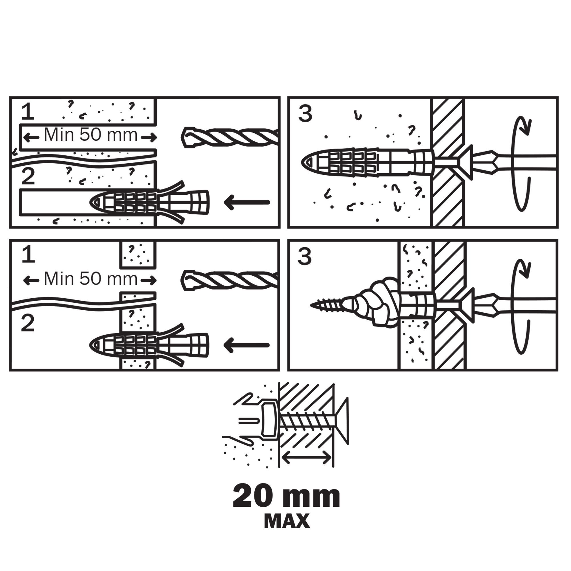 Diall Universal Grey Multi purpose screw wall plug Dia 8mm L