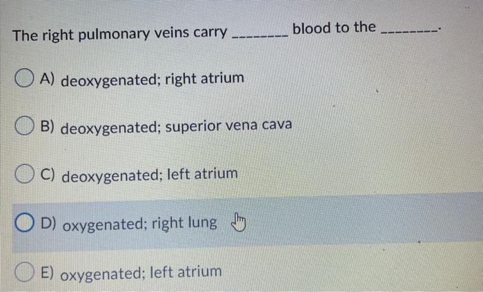 Solved The right pulmonary veins carry blood to the OA Chegg