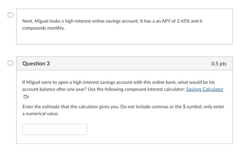 Miguel wants to set up a savings account in order to Chegg