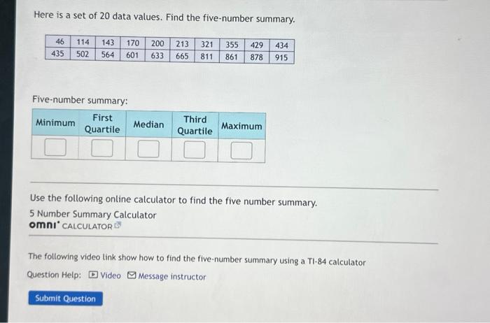 Here is a set of 20 data values. Find the five number Chegg