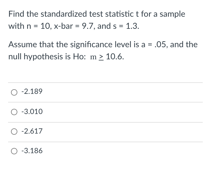 Solved Find the standardized test statistic t for a sample Chegg