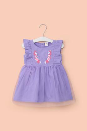 Buy KARROT Lilac Embroidered Cotton Round Neck Infant Girl s Dress