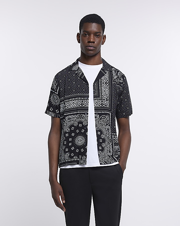 Black regular fit bandana print shirt River Island