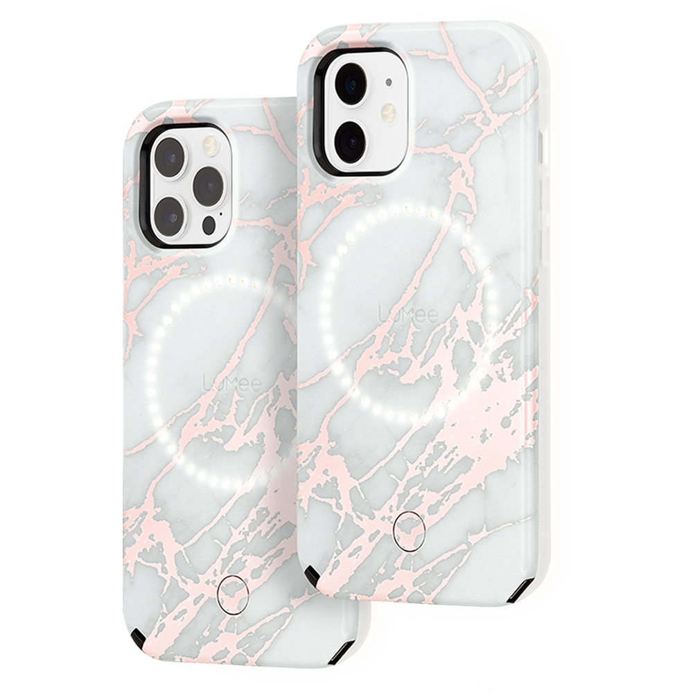 LuMee Halo Selfie Light Case for iPhone 12 12 Pro Rose Gold White
