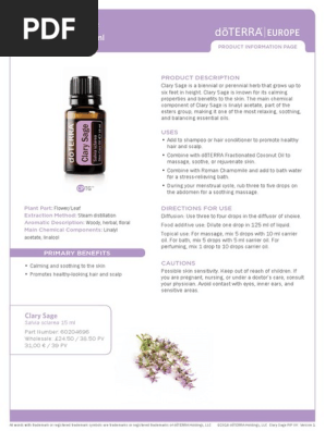 Clary sage doterra 2025, Clary Sage Oil PDF PDF Essential Oil Plants 2025