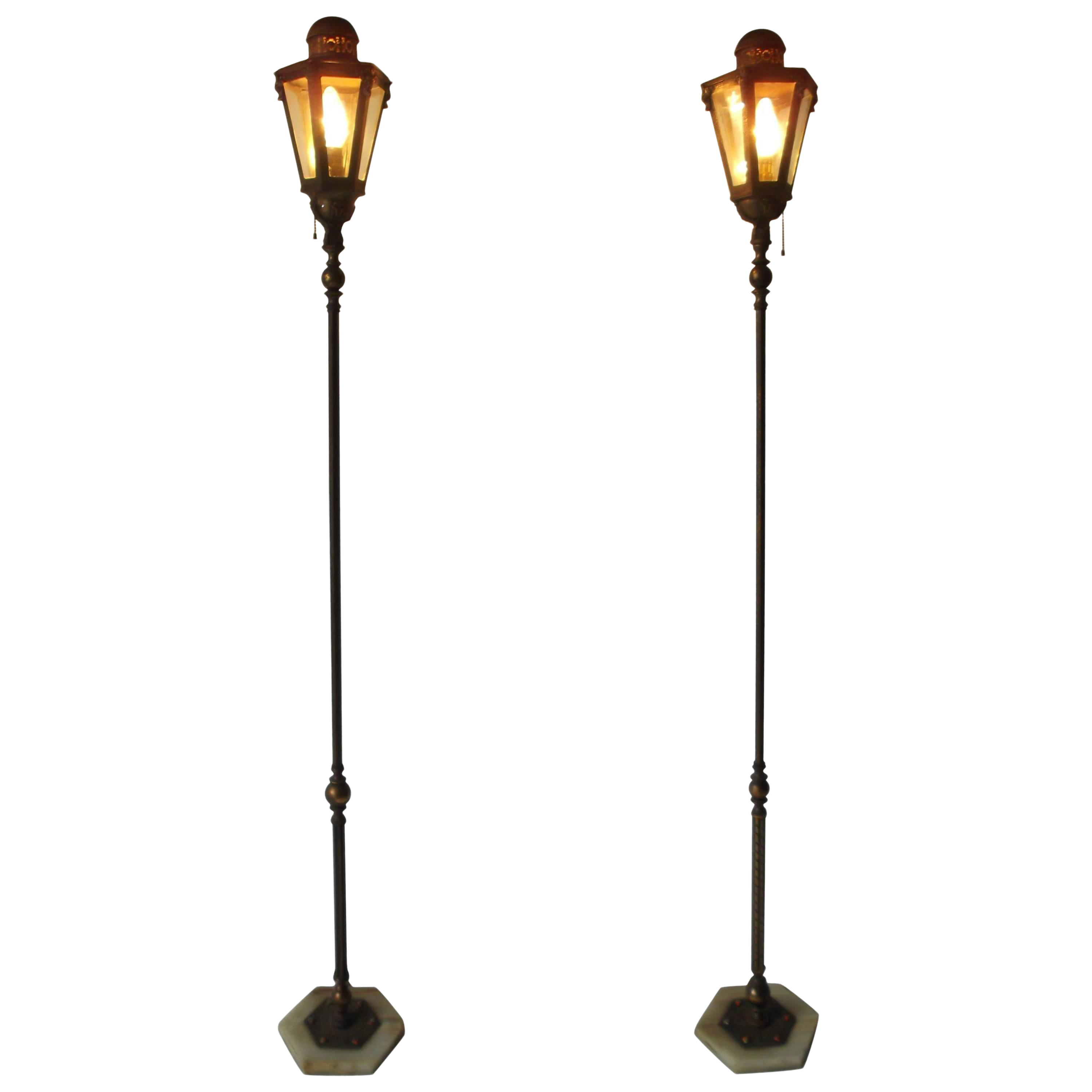 Antique Moorish Onyx and Jewel Base Lantern Floor Lamps a Pair