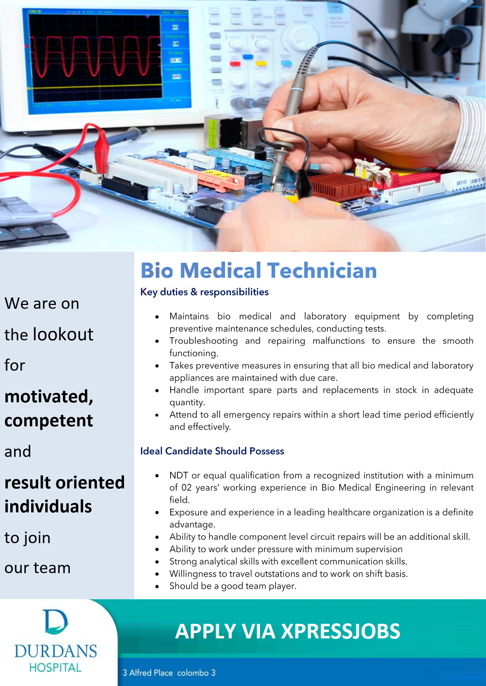Bio Medical Technician Durdans Hospital XpressJobs