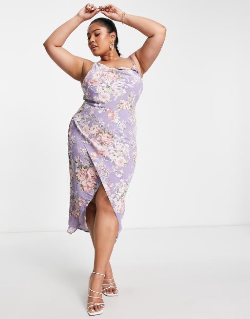 Missguided Plus Satijnen midaxi cami jurk met gedrapeerde halslijn in lila