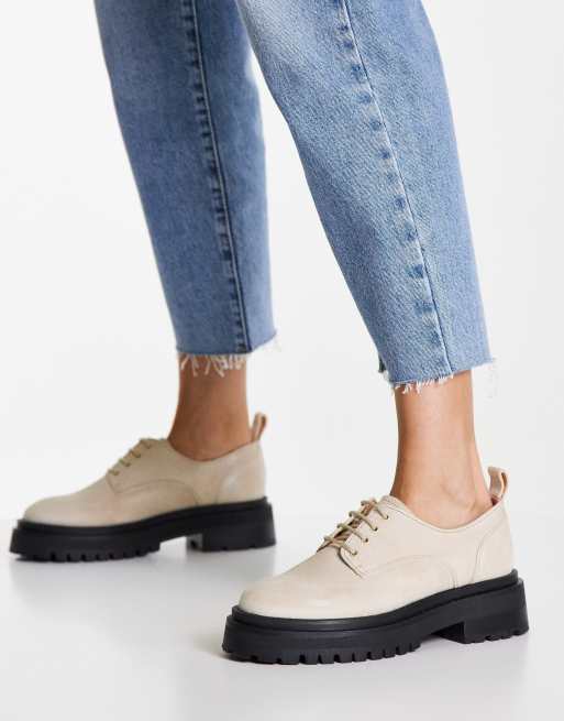 Other Stories leather lace up chunky sole shoe in beige ASOS