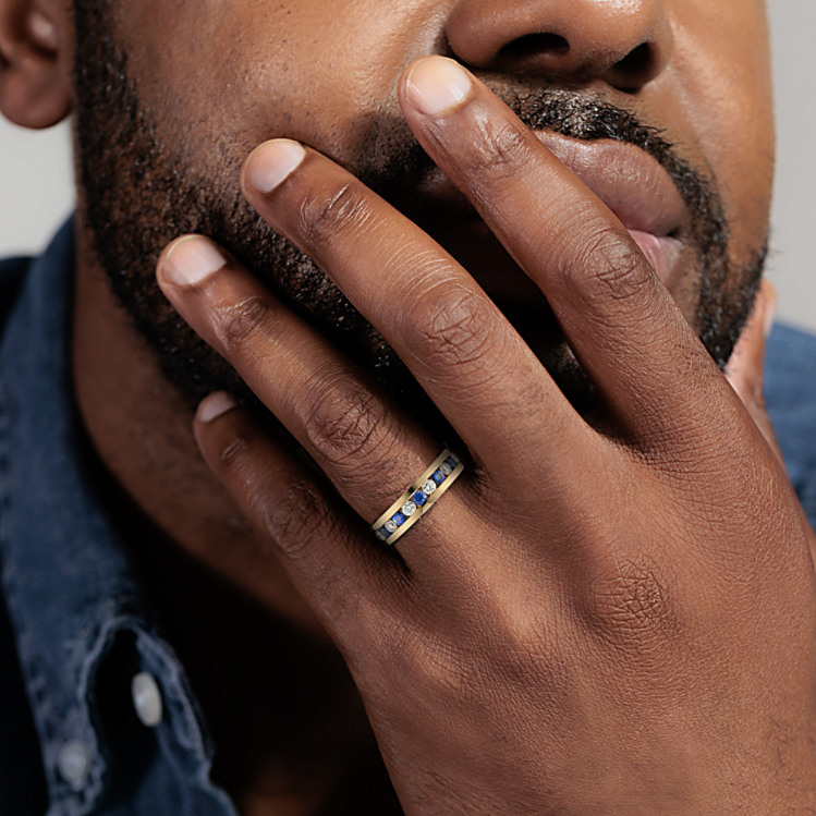 Mens wedding band with sapphire 2025