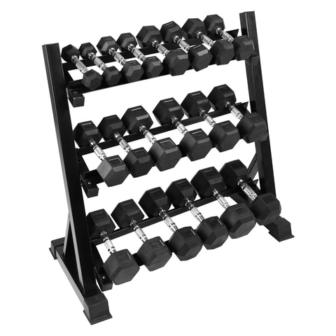 1441 Fitness Hex Dumbbell Combo Set 1 Kg 10 Kg 8 Pairs With 3 Tier Dumbbell Rack