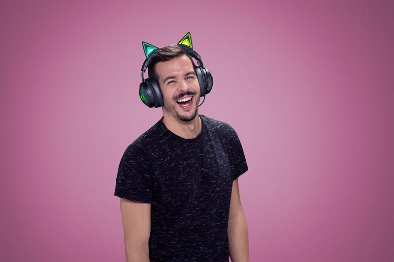 Razer Kraken Kitty V2 Pro Wired RGB Headset Interchangeable Ears Kitty Bear Bunny Stream Reactive Lighting Detachable HyperClear Cardioid Mic
