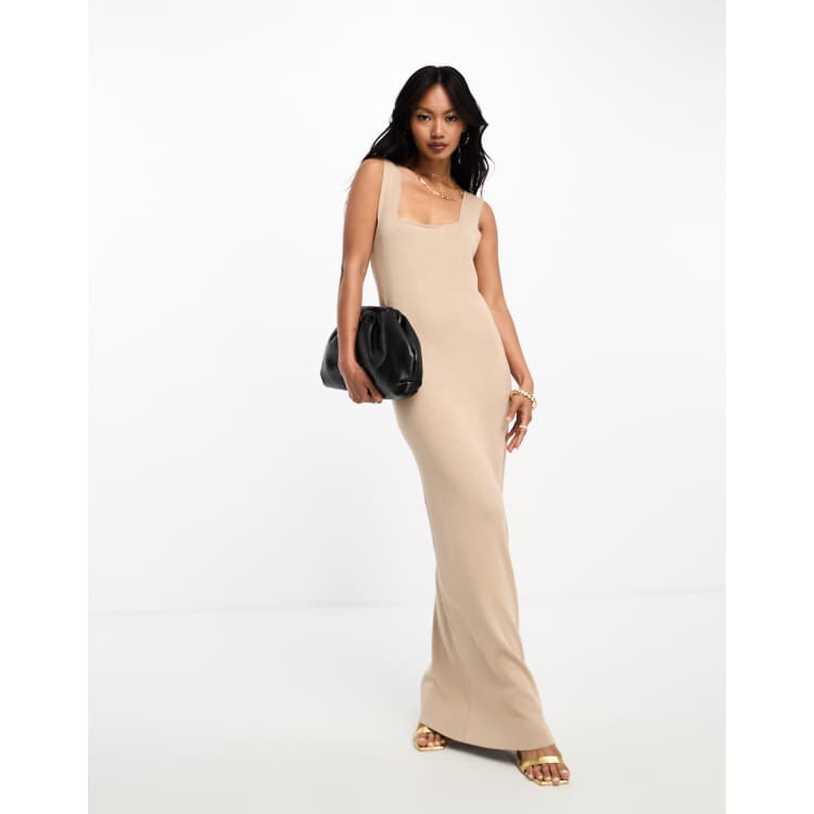 Beige long dress 2025, Y.A.S structured soft knitted strappy maxi dress in beige 2025