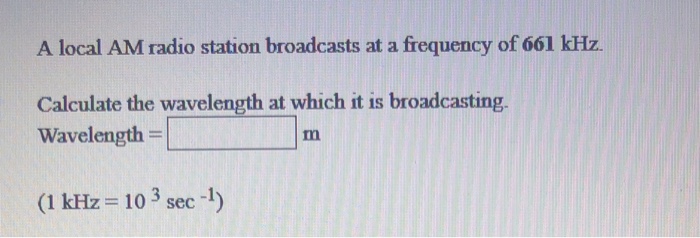 Solved A local AM radio station broadcasts at a frequency of