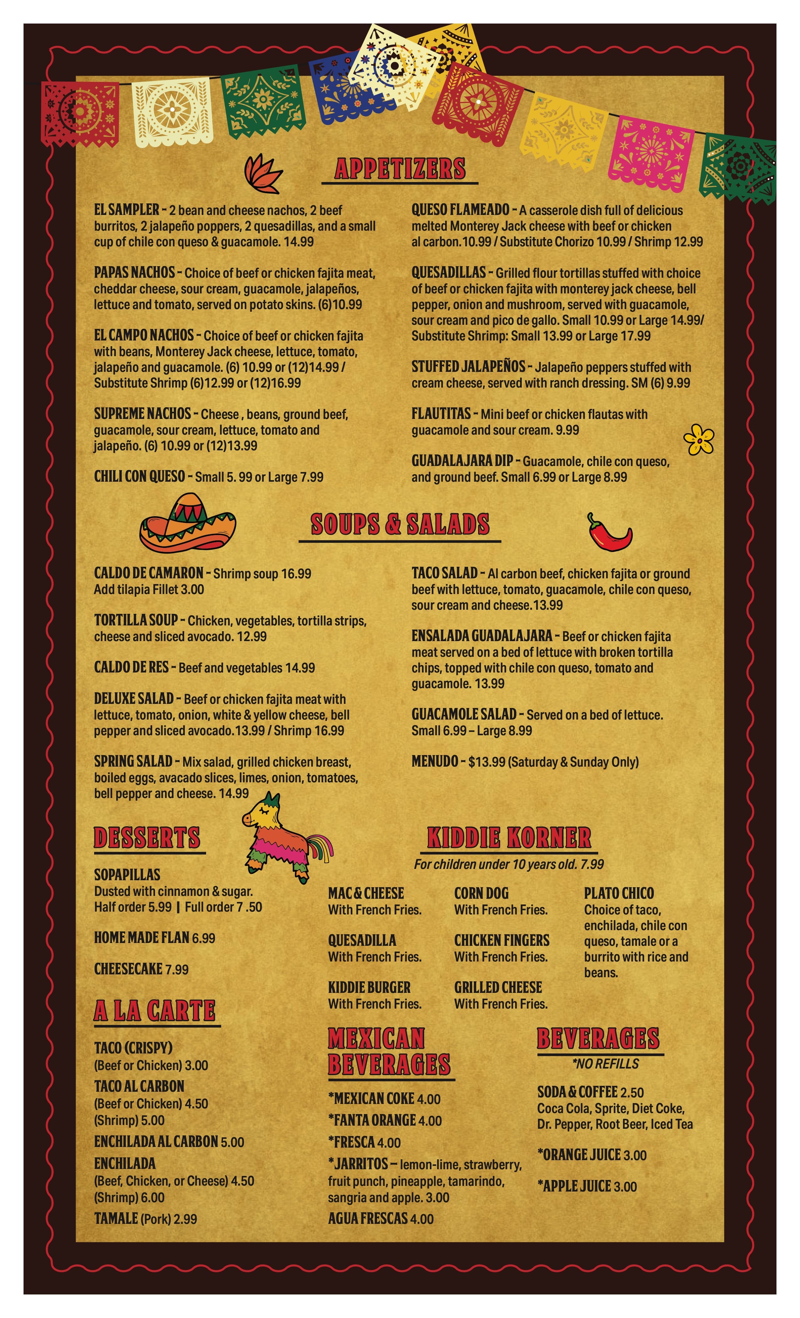 Menu Guadalajara s Mexican Restaurant