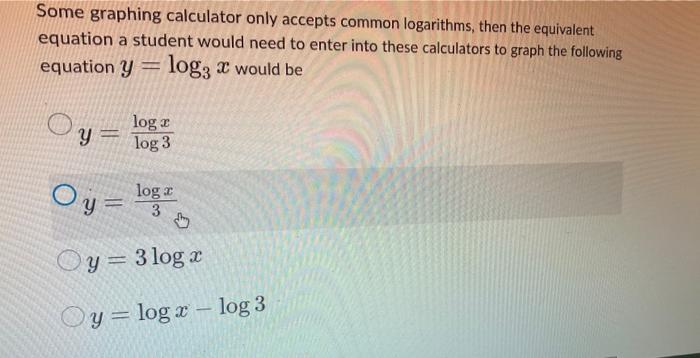 Solved Some graphing calculator only accepts common Chegg