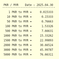 Malaysian ringgit convert to pakistani rupees 2025
