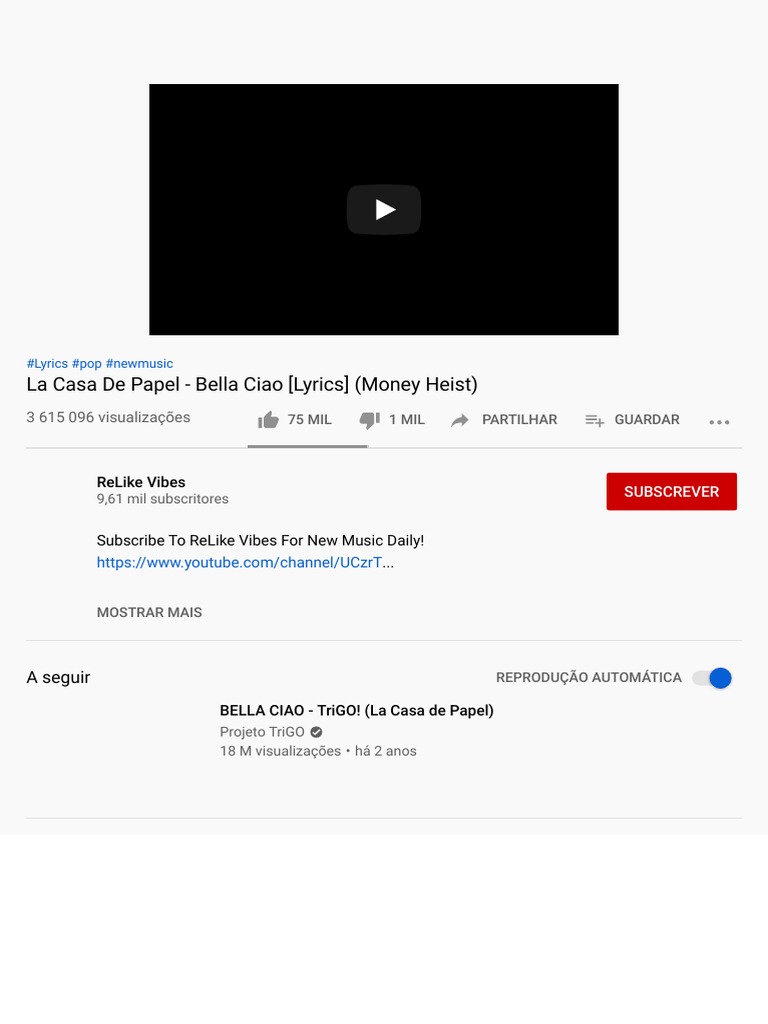 La Casa de Papel Bella Ciao Lyrics Money Heist YouTube PDF