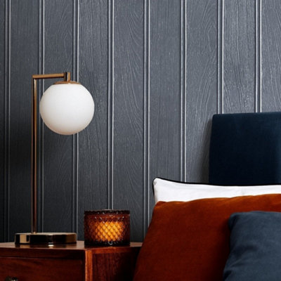 Superfresco Easy Navy Wood effect Panel Smooth Wallpaper DIY at B Q