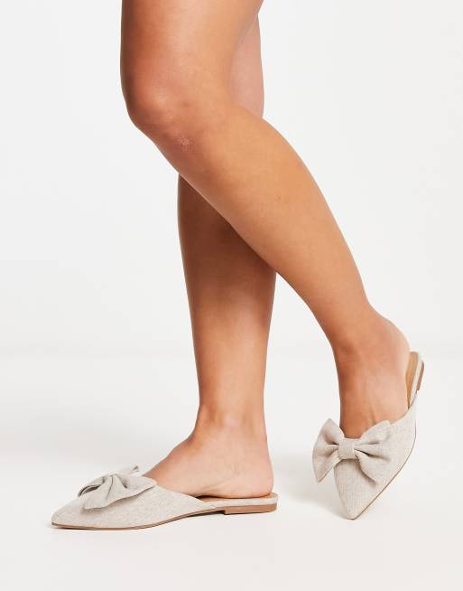 ASOS DESIGN Lass oversized bow pointed flat mules in natural fabrication