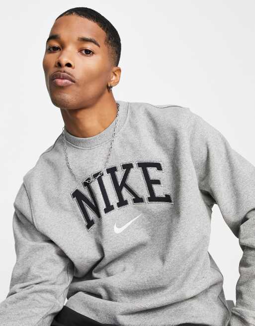 Nike Retro logo heavyweight sweatshirt in grey