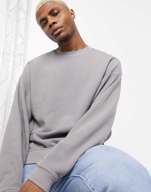 ASOS DESIGN oversized ribbed sweatshirt in grey