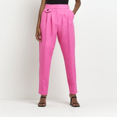 Womens pink trousers 2025, Pink pleated tapered trousers River Island 2025