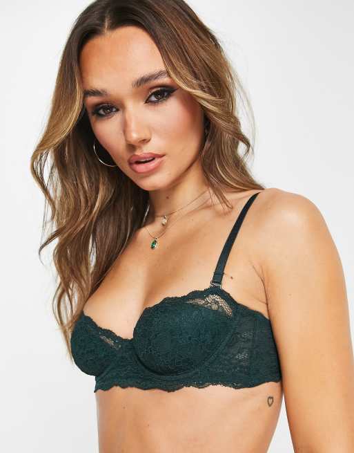 Monki lace balconette bra in dark green ASOS