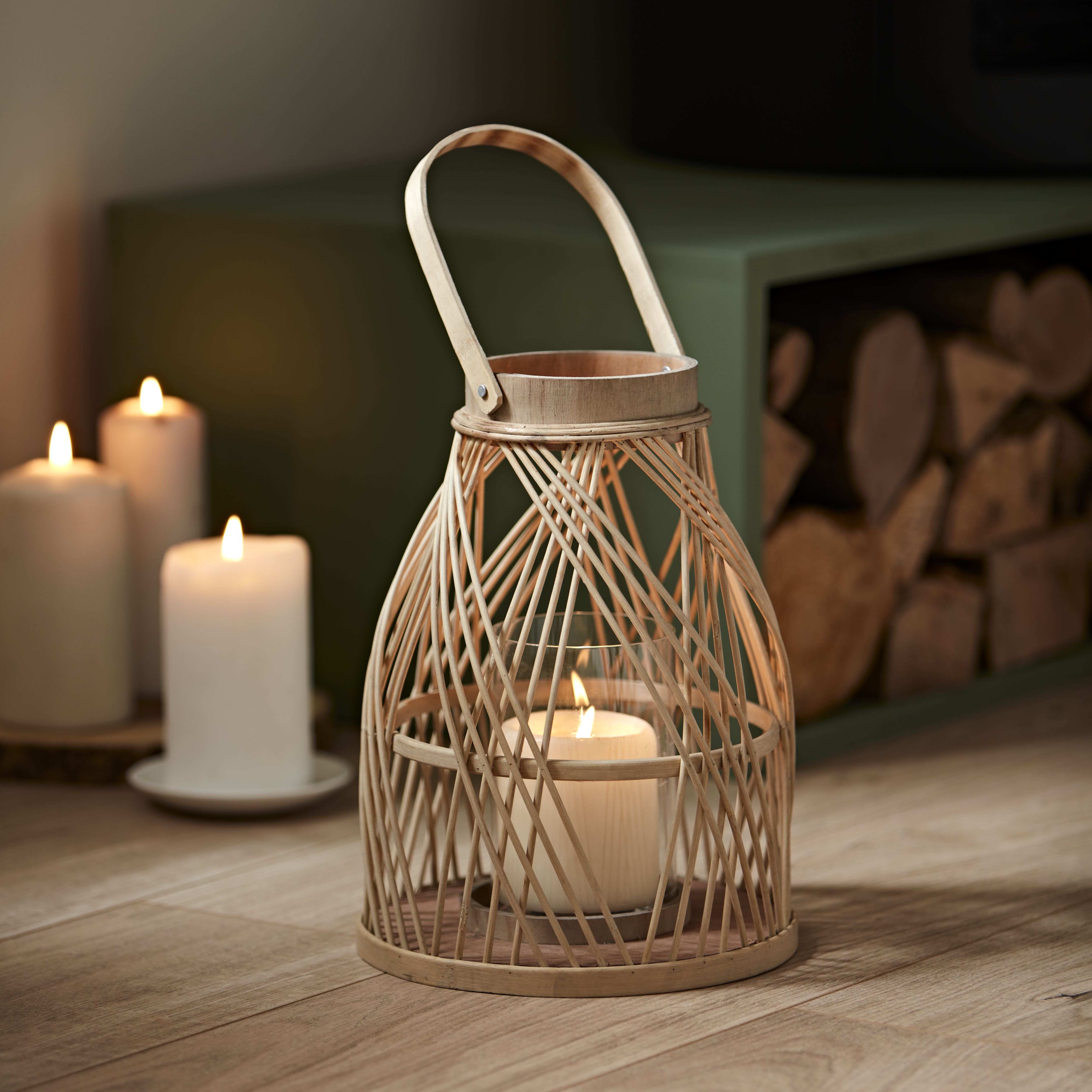 Natural Bamboo Lantern W 21cm x D 21cm DIY at B Q