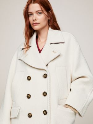 Long Double Breasted Oversized Peacoat White Tommy Hilfiger