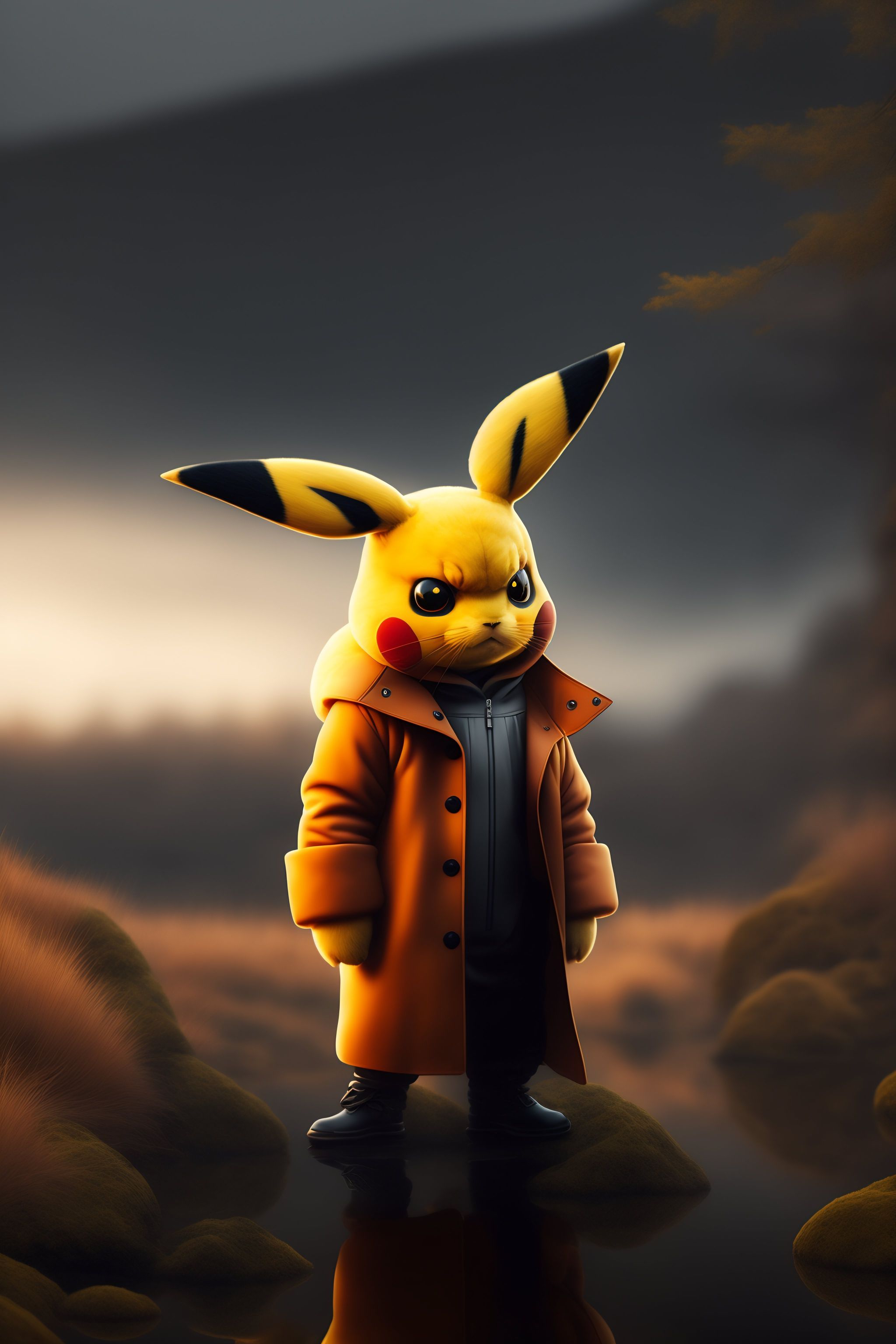 Lexica A creepy pikachu with a coat