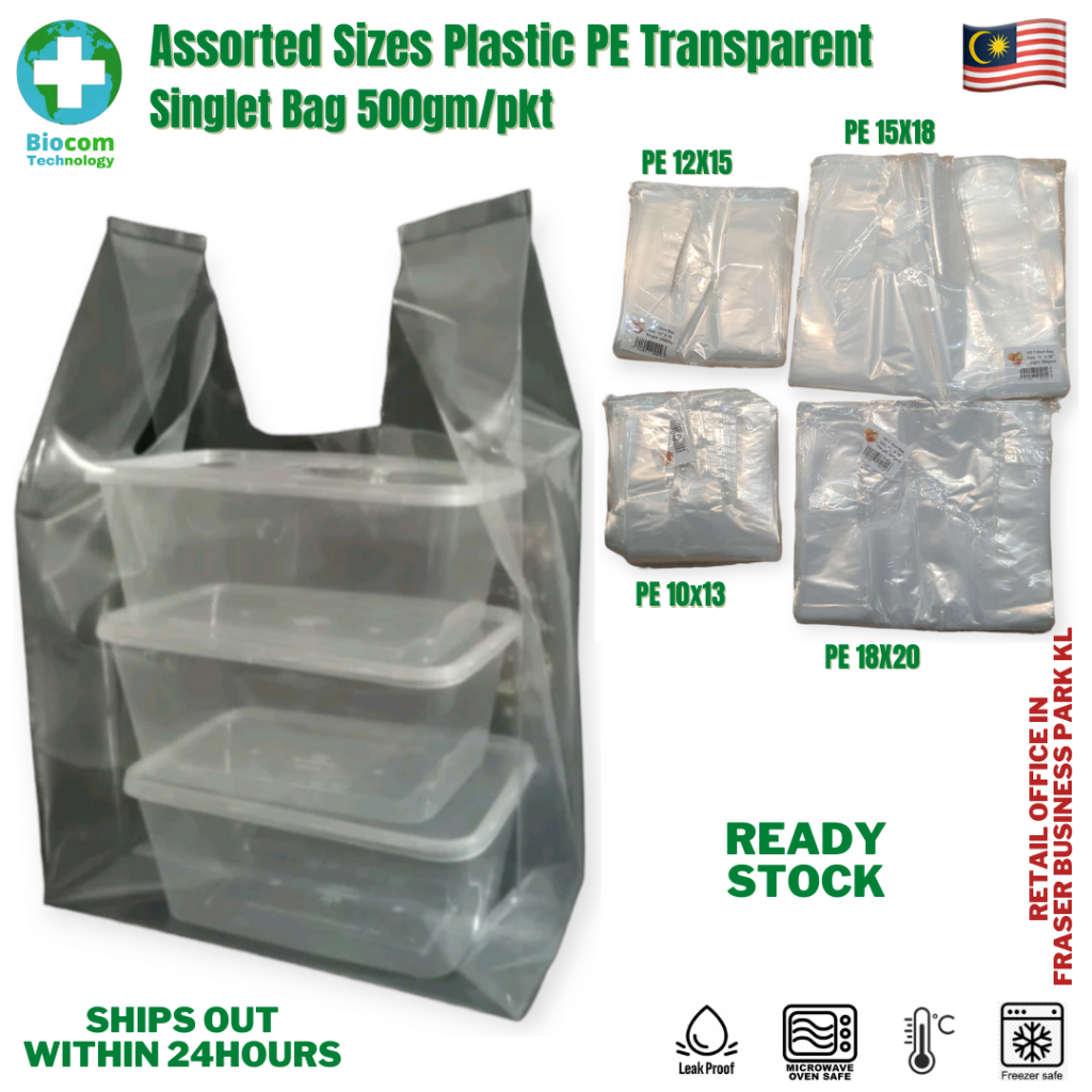 500gm Assorted Sizes Plastic PE Singlet Bag Transparent Clear
