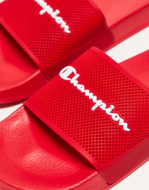 Champion Super Slide Duo Script Slides Sandals Red white