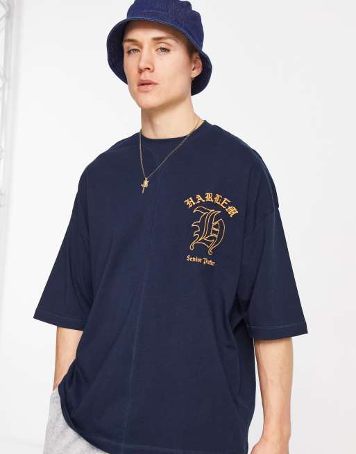 ASOS DESIGN oversized t shirt in navy with chest print ASOS